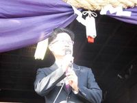 | 芝馬の足やシンボルなど胴体各部分のパーツです。 | 今年度も岸さんによって芝馬の目が作られていきます。 | 午後になり組長の中村一仁市議会議員も正装され一転してご来賓に・・・。 | 市長就任されて初めての開催に中野市長も駆けつけて頂きました。 |